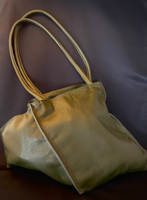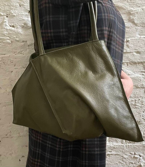 Deze MOOIMOOI!handtas is gemaakt naar het idee van origami.