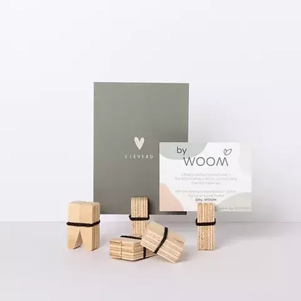 In deze houten knijpertjes kun je elk dikte kaartje of foto in zetten. Heel leuk om naambordje of menukaartje in te zetten tijdens een diner. Set van 5 stuks.