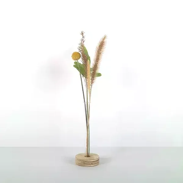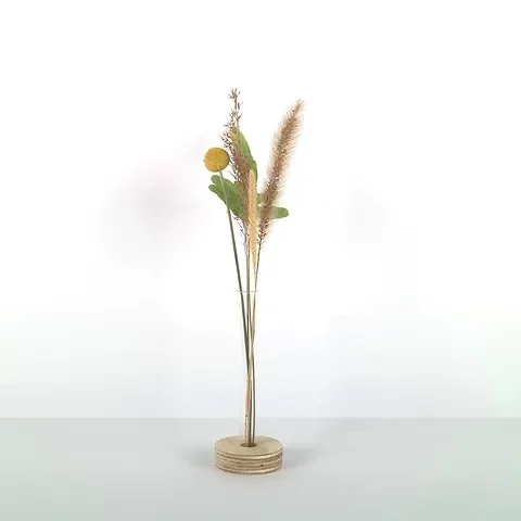 Dit houten bloemvaasje wordt in een mooi doosje inclusief het glazen vaasje geleverd.