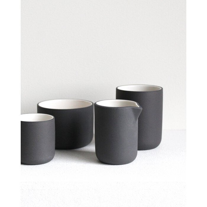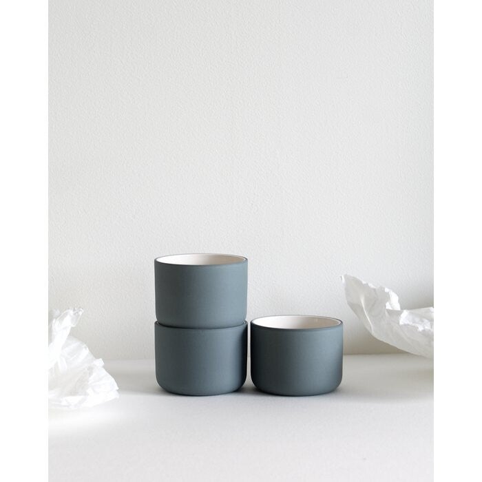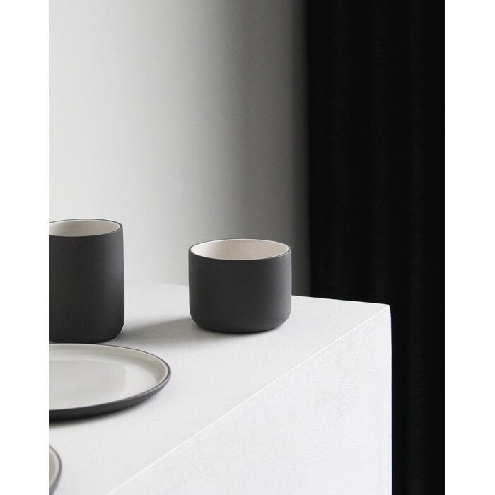 De producten hebben een natuurlijke matte afwerking aan de buitenzijde en een witte glazuurlaag aan de binnenkant. Deze twee lagen zijn zichtbaar op de rand van ieder product.