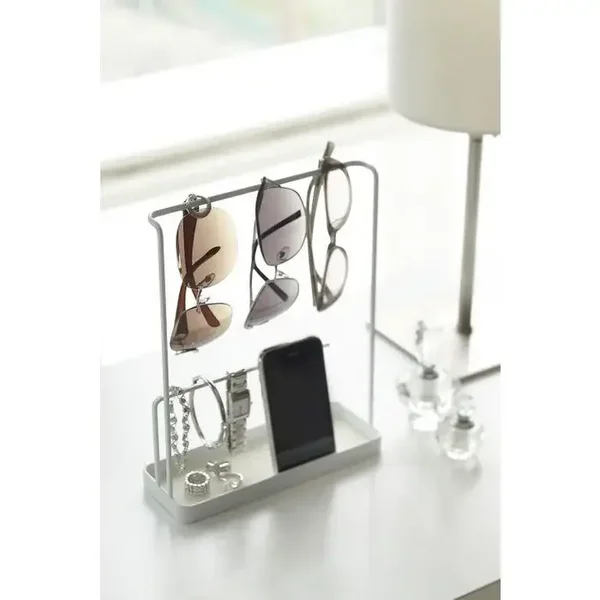 Op deze accessoiresstandaard van Yamzaki kun je verschillende soorten sieraden en zelfs zonnebrillen kwijt. Het bovenste rekje biedt ruimte aan kettingen en op het onderste rekje kun je horloges en armbanden ophangen. In het bakje kun je dan bijvoorbeeld weer wat kleine spulletjes opbergen of bewaar er je ringen.