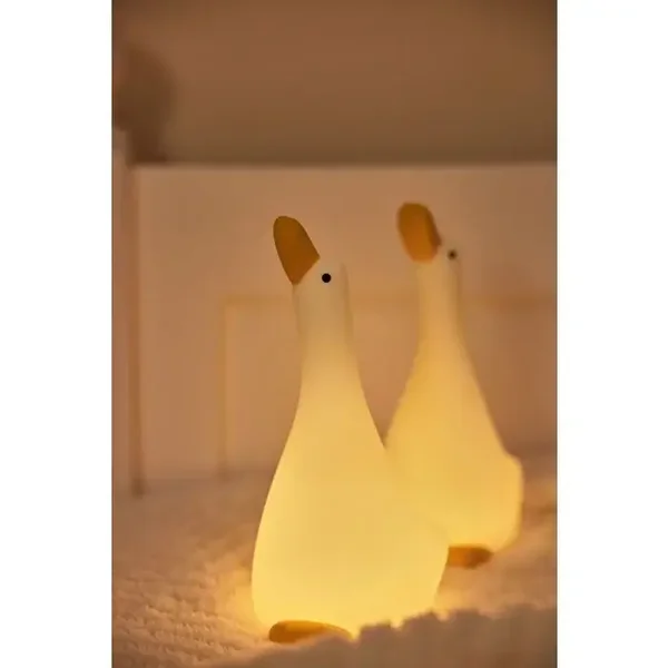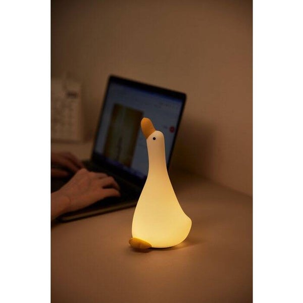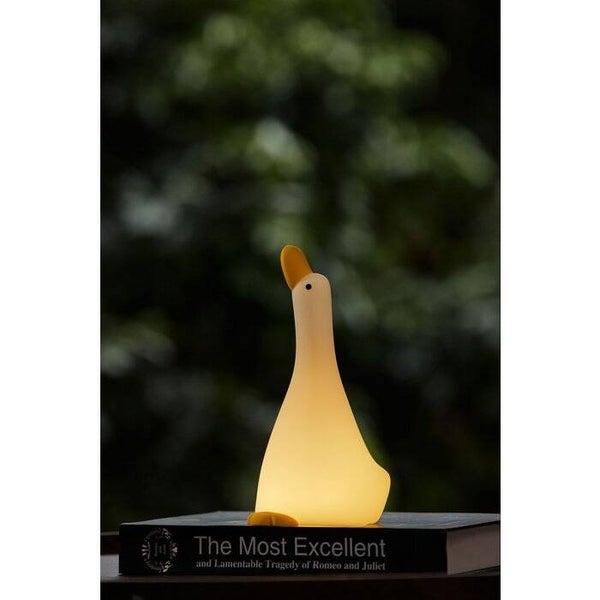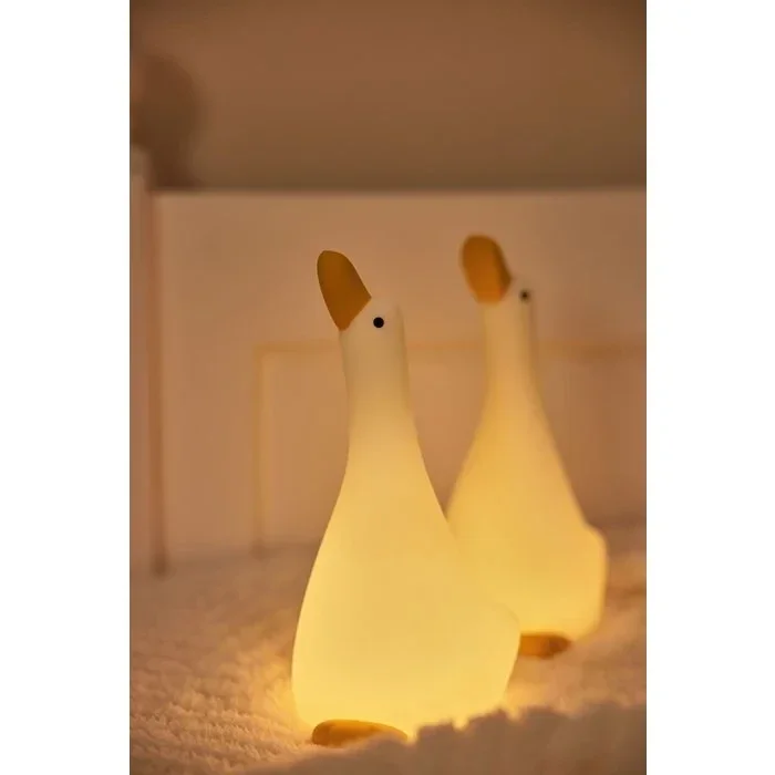 Ben je op zoek naar een leuk kindernachtlampje voor je kleintje? Dan is de Goose lamp een goede keuze. Dit schattige lampje heeft de vorm van een gans en kan in drie verschillende standen schijnen: Zacht, iets feller en fel. Je kunt ook een timer instellen van 30 minuten, zodat het lampje automatisch uitgaat als je kindje in slaap is gevallen. Het lampje is oplaadbaar via een USB-C kabel, dus je hoeft geen batterijen te vervangen. Dit nachtlampje is gemaakt van zacht siliconen materiaal, dat veilig en duurzaam is. Het is ook makkelijk mee te nemen, bijvoorbeeld naar een logeerpartijtje of op vakantie. Met de Duck lamp geef je je kindje een gezellig en rustgevend lichtje voor in de nacht. Afmetingen: 200x100x109mm