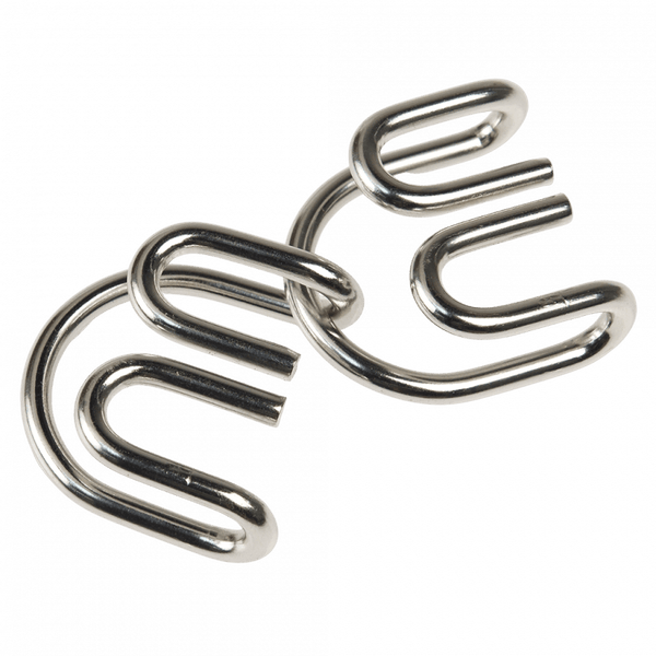 Kun je de twee stukken metaal scheiden? Daag je geest uit met deze leuke draadpuzzel! Deze hersenkraker is ideaal als kousvuller of nieuwigheidscadeau.