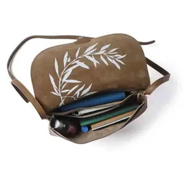 De vakindeling houdt alles georganiseerd.Je smartphone, sleutels en zonnebril vinden hun plek in het ruime hoofdcompartiment. En het voorvak? Ideaal voor je notitieblokje of lippenbalsem.