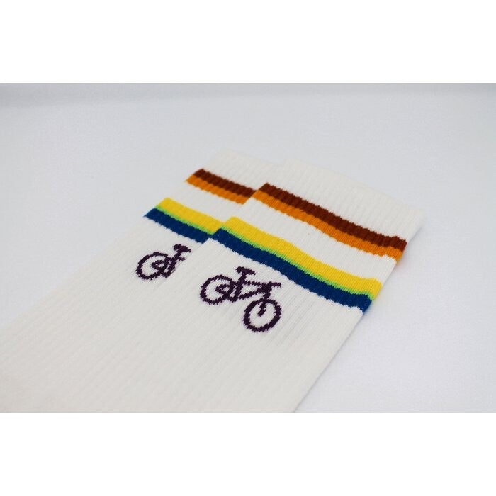 Geef je voeten het comfort dat ze verdienen met Slopes&Town Orange Bikes Crew bamboesokken. Deze sokken zijn gemaakt van een verlengbare bamboemix en zijn voorzien van de motief van onze fietsen, wat zorgt voor een beperkt soepele en gezellige ervaring.