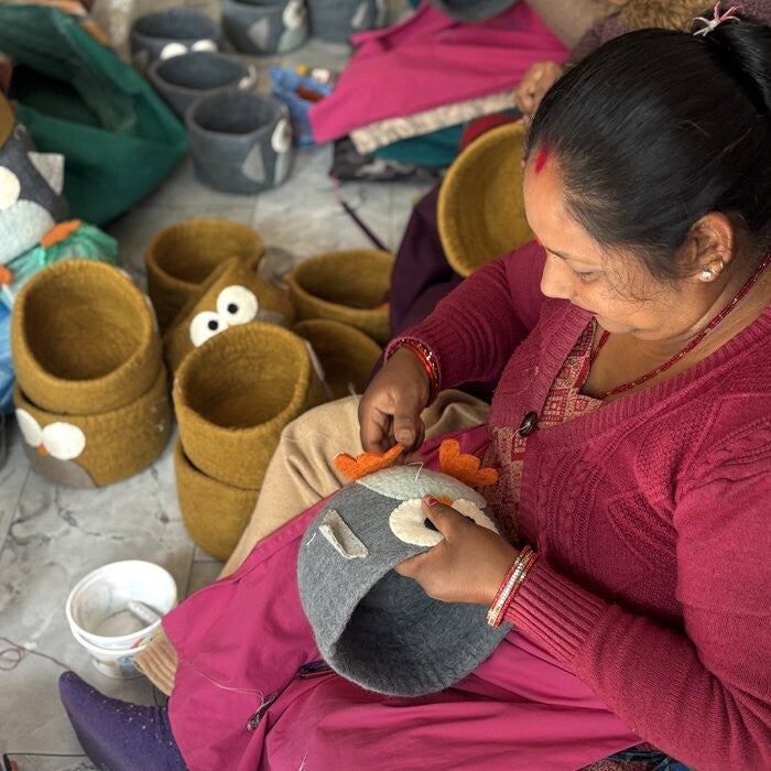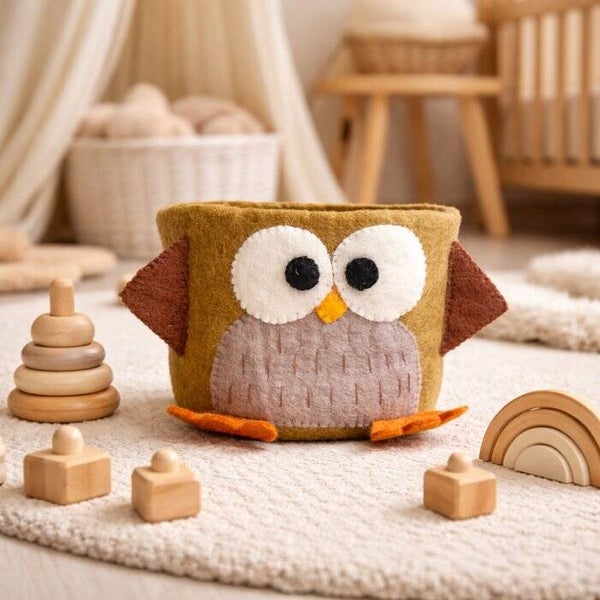Schattig mandje van een uil in grijstinten. Heel leuk voor bijvoorbeeld babysokjes of speelgoedjes. Handgemaakt, Fairtrade (WFTO)