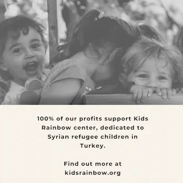 100% van de winst gaat naar het onderwijs van Syrische kinderen in Zuid-Turkije dankzij www.kidsrainbow.org.