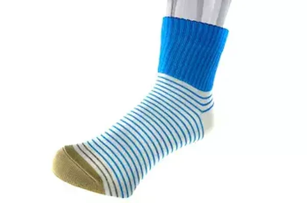 Gestreepte sokken verpakt in leuk kartonnen doosje.