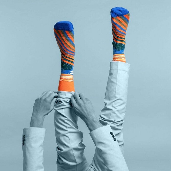 Kunstenaar: Edvard Munch Gemaakt: 1893 Afmetingen (cm): 91 × 73,5 Formaat: olie, tempera, pastel en krijt op karton Locatie: National Gallery, Oslo, Noorwegen De schreeuw is de bekendste en meest gereproduceerde van alle motieven van Edvard Munch en het enige schilderij ter wereld dat ooit een emoji is geworden. Het landschap op de foto is herkenbaar als de Kristiania Fjord gezien vanaf Ekeberg met expressieve kleuren en vloeiende lijnen. De centrale figuur is een dubbelzinnig wezen (niemand is zeker van zijn geslacht of kenmerken) dat een universeel symbool van angst en een van de meest iconische beelden van kunst is geworden. Er zijn twee schilderijen van De Schreeuw en beide zijn gestolen en veilig teruggebracht. 80% gekamd katoen, 17% polyamide, 3% elastaan. Gemaakt in Portugal met behulp van het meest geavanceerde vakmanschap om de fijnste naadloze sokken te produceren. Binnenstebuiten wassen (40ºC/100ºF max). Niet in de droogtrommel drogen, strijken.